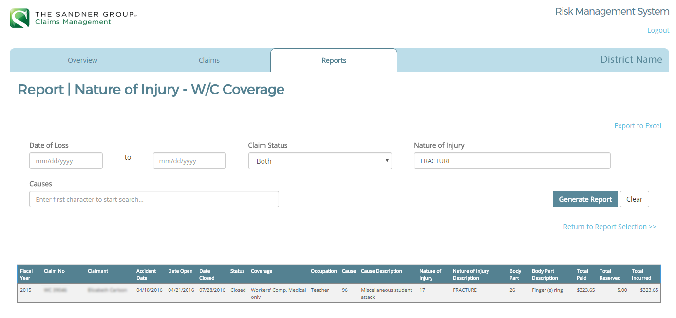 The Claims Portal empowers you. Specific features provide you with key data elements that allow you to securely hone in on injury types, causes, location risk assessments, and claim history; allowing you to proactively take necessary loss control measures. Go a step further by customizing your data for analysis with the MS Excel export.